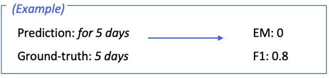 Exact Match보다는 좀 더 유연한 형태의 metric으로, token overlap을 통해 평가한다. 다음 그림과 같은 차이점이 있다.