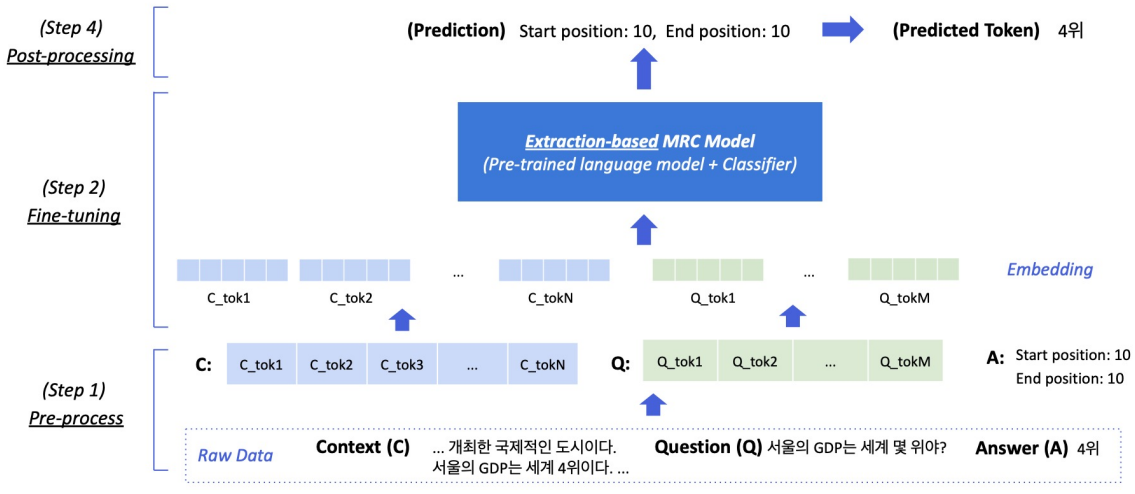 개략적인 Extraction-based MRC는 다음과 같이 나타낼 수 있다.