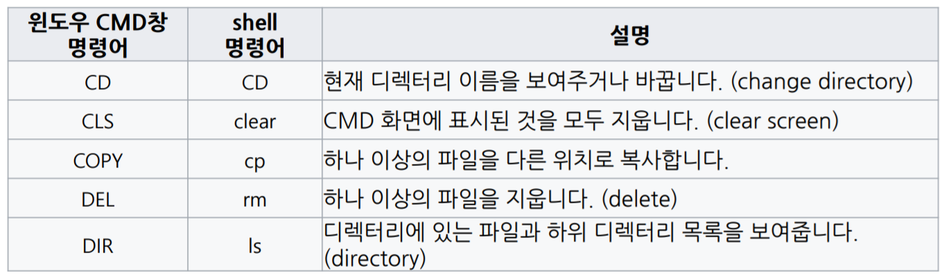 대표적인 명령어는 다음과 같다. (기본적인 것이니 반드시 외워놓자)