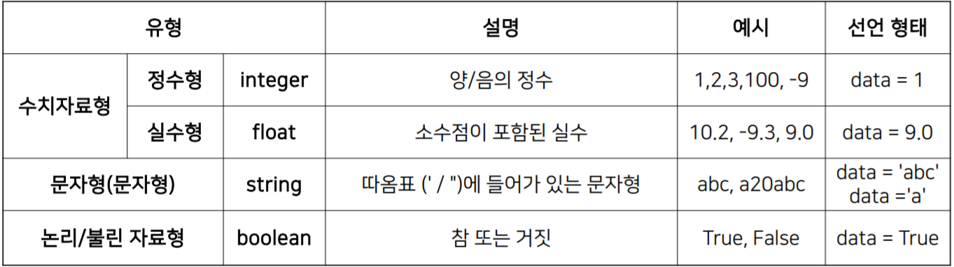 변수(Variable) : 변수는 값을 저장하는 장소이며, 변수는 실제로는 메모리 주소를 가지고 있고, 값을 저장해야 할 때는 그 메모리 주소에 값을 할당하는 것이다.