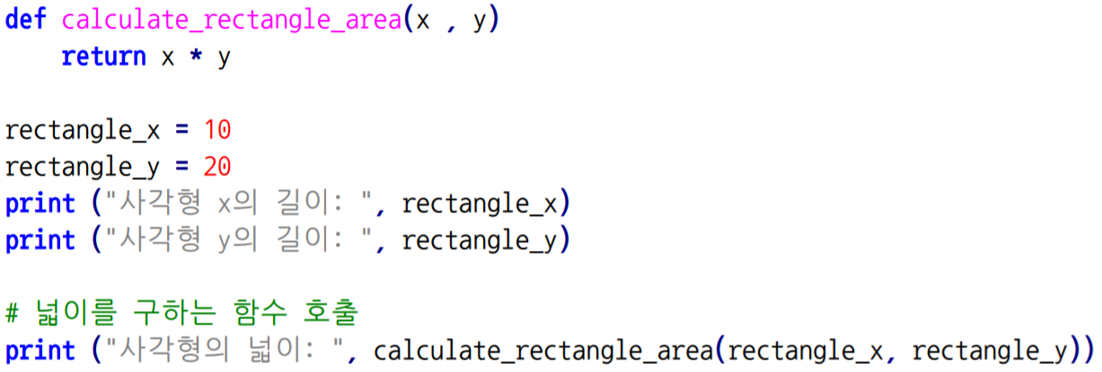 - 함수로 만들기 좋은 것은, 1) 공통적으로 사용되는 코드 2) 복잡한 수식 3) 복잡한 조건