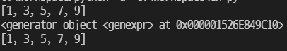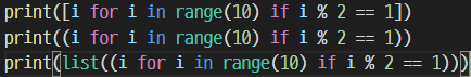 - 좀더 편하게 generator를 생성하기 위한 generator expression이 있는데, ()를 사용한다.