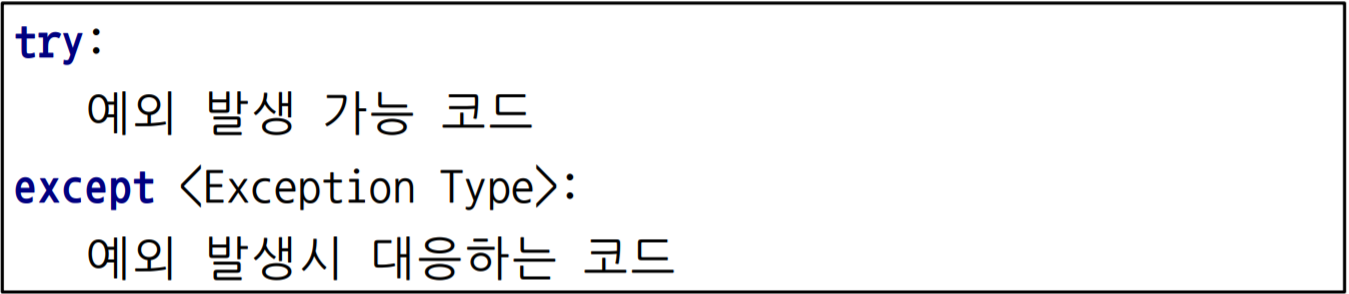 파이썬의 예외처리 : 프로그램 사용 시 발생할 수 있는 여러 오류를 처리하는 것. 예상 가능한 예외는 반드시 개발자가 사전에 정의하여 처리를 해주어야함.